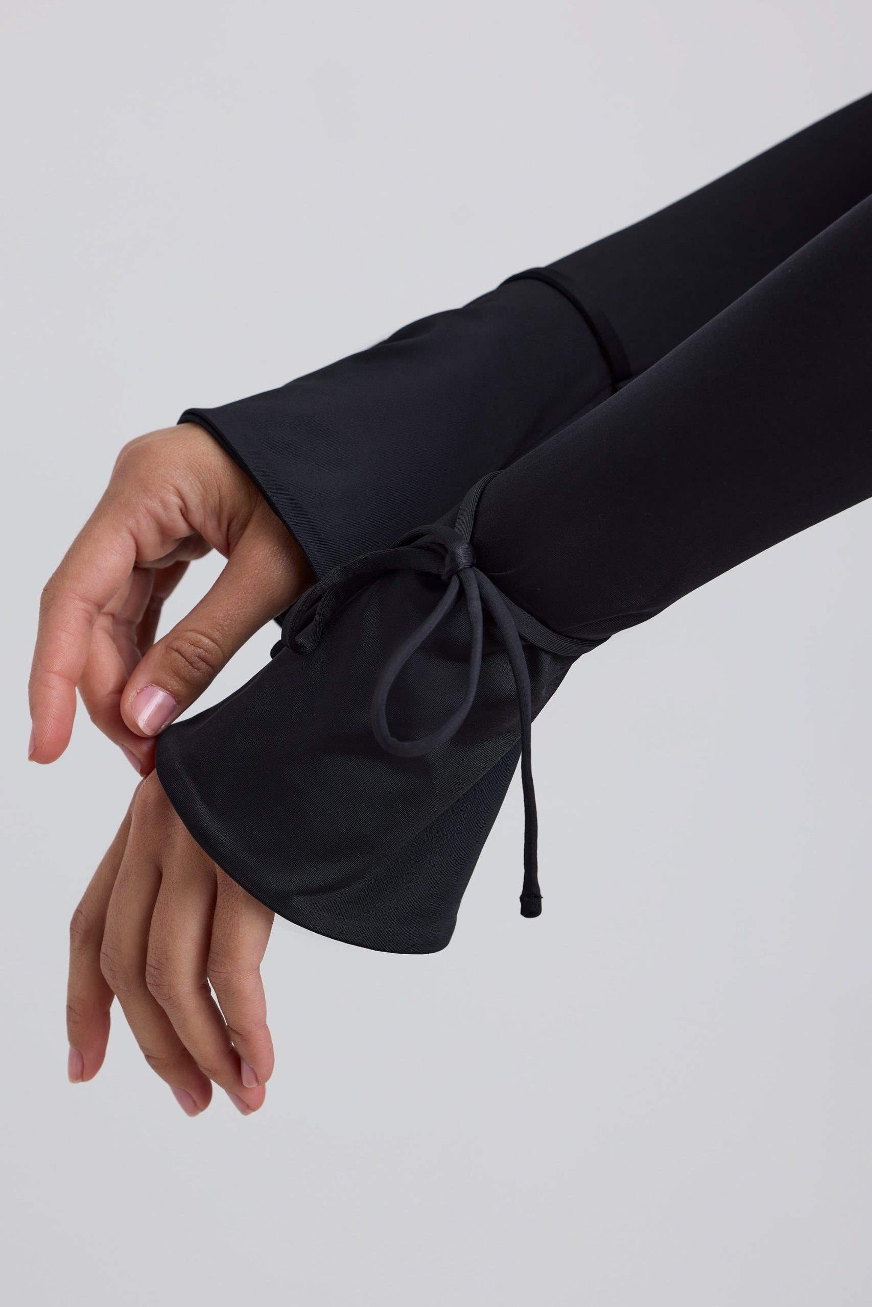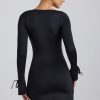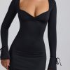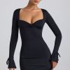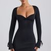 Versatile statement staples. A style you’ll reach for time and time again, the Raelyn mini dress is cut from our sculpting and stretchy slinky jersey fabric to a universally flattering A-line silhouette. It features a ruched sweetheart neckline and long sleeves with pretty tie cuffs.