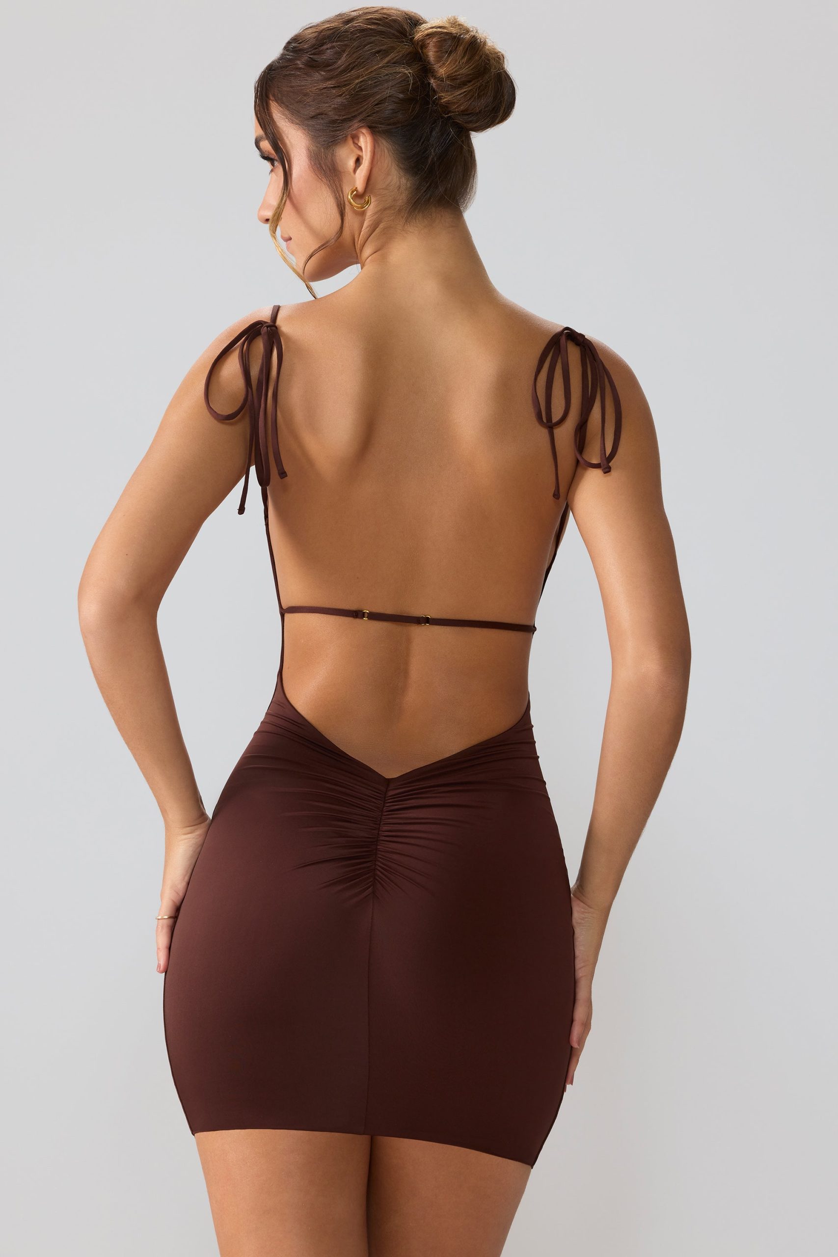 Enhance your shape with Orli. Designed in premium slinky jersey fabric that hugs your curves and enhances your shape, the Orli mini dress is a sexy and seductive partywear staple. With an asymmetric neckline and delicate shoulder straps, Orli features a statement open back with ruching at the rear.