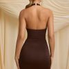 Make a statement in Sofija. The mini dress of the season, it’s crafted from our supportive slinky jersey fabric with a touch of stretch and elevated with ruching for a comfortable bodycon fit. It features a U-shaped plunge neckline with wiring for extra support and a fixed halterneck strap.