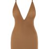 Elevated foundations. The perfect base for our semi-sheer HOTFIX styles, this mini dress is crafted from lightweight, breathable and soft mesh to a sculpting bodycon silhouette for enhanced support. It features a plunging neckline, low scooped back and adjustable neck and shoulder straps, allowing for multiway styling for a seamless finish under your favourite styles.