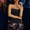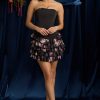 Dreamy florals meet signature silhouettes with the Forsythia mini dress. Designed to be dressed up, it’s crafted from lightweight stretch satin to a playful silhouette with a built-in corset bodice for enhanced shaping and features a tiered, ruffled skirt. The bandeau neckline is traced with delicate ruffle trims and the lace-up back is complete with a tonal, adjustable panel that creates an open-back look when removed.