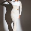Velvet Long Sleeve Maxi Dress in Ivory