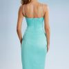 Meet Farrah, a stunning satin midi dress designed with a wrap-over bust, a flirtatious thigh-split and romantic, ruched fabric at the empire line and hips. The signature OP satin softly drapes over the body and is finished with crystal-embellished shoulder.