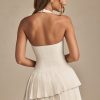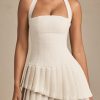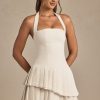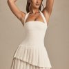 Crafted to precision. Design to define and flatter your natural shape, the Rosaria mini dress is crafted from premium textured tweed to a classic halterneck silhouette with a figure-hugging drop-waist bodice. It’s complete with a layered pleated skirt for stunning movement with every step.