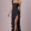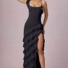 Dressing up? The Hera gown is made for you. Crafted from premium flowing chiffon and designed for a figure-skimming fit, it’s designed with a striking asymmetric neckline and tiered ruffle skirt with a thigh-high split for dramatic movement. It’s complete with criss-cross straps at the back and an adjustable lace-up back, inspired by classic romantic styles, and perfect for your most memorable occasions.