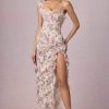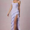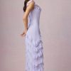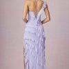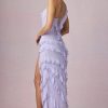 Asymmetric Ruffled Lace-Up Gown in Lilac