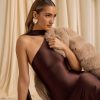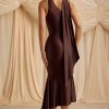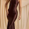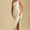 Be the best-dressed this holiday season with our Shaya midaxi dress, rendered in two classic hues. It’s crafted to an asymmetric one-shoulder silhouette from premium, high-shine stretch jersey that’s designed to hug your curves beautifully. It features a godet-pleated fishtail hem and an attached matching neck scarf for multiple styling options.