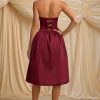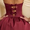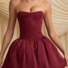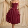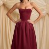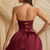 Convertible Bow-Detail Bubble Hem Midaxi Dress in Wine Red
