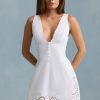 Inspired by Mediterranean artwork, the Calina mini dress is uplifted with intricate cutwork detailing at the hem. Ideal for warm-weather dressing, it’s crafted from lightweight cotton poplin to a figure-skimming A-line silhouette and framed with a scalloped neckline. The shirred back panel and adjustable shoulder straps mean enhanced comfort and support, always.