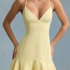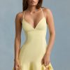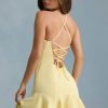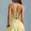 Drop-Waist Lace-Up Mini Dress in Yellow
