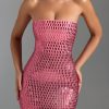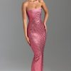 True decadence. Exclusively designed in-house, the Amaya maxi dress is a special piece made for memorable occasions. It’s crafted from premium 20D mesh with a double-layered mesh lining for extra coverage. The sculpting bandeau silhouette is adorned with scores of sparkling HOTFIX crystals, perfectly placed to catch the light with every step. It’s complete with detachable camisole straps for custom styling.