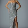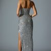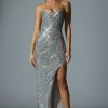 Ultimate glamour. Classy, chic and undoubtedly timeless, the Jasella gown is crafted from luxe stretch fabric that hugs every curve beautifully for the perfect hourglass silhouette. Available in two festive hues, it’s designed with a curved bandeau neckline, elevated with internal silicone tape for enhanced hold, and features a built-in corset bodice that’s sculpting and supportive. The thigh-high side split alludes to the glamorous aesthetic.