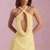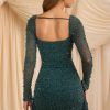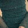 Embellished Cowl-Neck Draped Mini Dress in Emerald Green