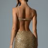 Your time to shine. Crafted from luxe stretch fabric, the Sayzel mini dress is overlaid with scores of sparkling sequins that twinkle under spotlights, perfect for evening occasions. It’s cut to a bodycon silhouette with figure-defining curved cut-outs at the waist and features an open back. It’s framed with a V-shaped neckline and stretchy rouleau straps for enhanced support.