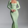 Made for your moment in the spotlight. A signature twist on a classic silhouette, the Cassiopeia maxi dress is cut to a stunning fishtail silhouette and adorned with scores of signature HOTFIX embellishments for endless sparkle. Crafted from figure-hugging 20D stretch mesh, it’s framed with a sharp square neckline and fitted long sleeves, complete with split cuffs.