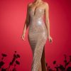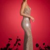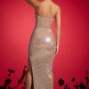 The spotlight is yours. Inspired by classic glamour, the Lucile gown is crafted from premium stretch power mesh to a column silhouette that skims every curve perfectly. It features a plunging sweetheart neckline, a boned bodice for enhanced shaping and detachable straps for custom styling. It’s saturated with scores of our custom-developed diamond HOTFIX embellishments that reflect the light for endless sparkle.