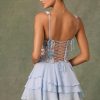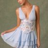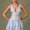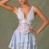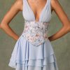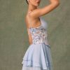 Embellished Ruffled Corset Mini Dress in Floral Blue