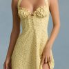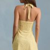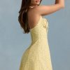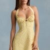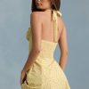 Halterneck A-Line Mini Dress in Yellow Flower Print