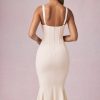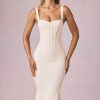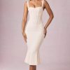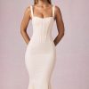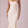 Classic, sculpted, endlessly chic. The Valentina midaxi dress is crafted from premium stretchy georgette fabric to a figure-defining fishtail silhouette, creating the hourglass silhouette you love. It features a corset bodice, vintage-inspired peekaboo detailing with delicate picot lace trims, and soft cups for enhanced shaping and support. The wide tapered straps are fully adjustable for your perfect fit.