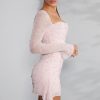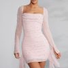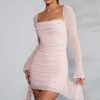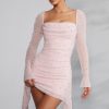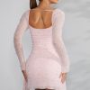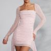 Long Sleeve Embellished Cowl Neck Mini Dress in Blush