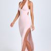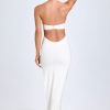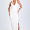 Modal Lace-Trim Halterneck Maxi Dress in White