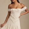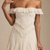 Made for sunlit afternoons. A classic style you’ll reach for time and time again, the Nahida mini dress is crafted from premium stretch lace and cut to an off-shoulder silhouette with delicate ruffled sleeves and V-shaped trims that create a sculpted look through the bodice. The A-line silhouette is accentuated with contrast godet pleats for stunning movement with every step.