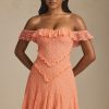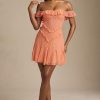 Made for sunlit afternoons. A classic style you’ll reach for time and time again, the Nahida mini dress is crafted from premium stretch lace and cut to an off-shoulder silhouette with delicate ruffled sleeves and V-shaped trims that create a sculpted look through the bodice. The A-line silhouette is accentuated with contrast godet pleats for stunning movement with every step.