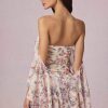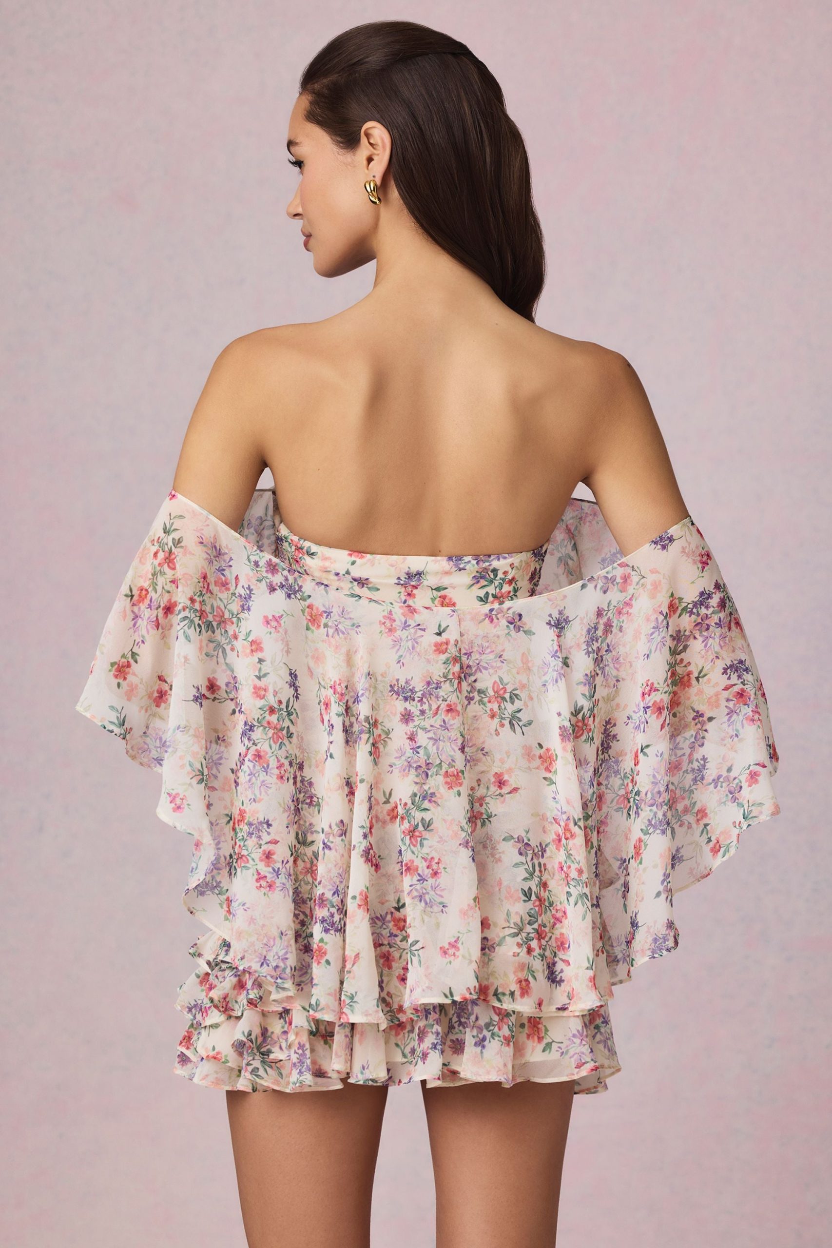 Ethereal and timeless, the Birdie mini dress is crafted from lightweight chiffon and framed with an off-shoulder cape-inspired overlay that creates dynamic movement with every step. It’s cut to a universally flattering A-line silhouette elevated with precise diagonal ruching and asymmetric ruffle detailing at the skirt. The bandeau neckline is secured with internal silicone grip tape for enhanced hold and it comes with detachable, adjustable straps for custom styling.