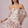 Ethereal and timeless, the Birdie mini dress is crafted from lightweight chiffon and framed with an off-shoulder cape-inspired overlay that creates dynamic movement with every step. It’s cut to a universally flattering A-line silhouette elevated with precise diagonal ruching and asymmetric ruffle detailing at the skirt. The bandeau neckline is secured with internal silicone grip tape for enhanced hold and it comes with detachable, adjustable straps for custom styling.