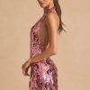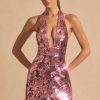 Sequin-Embellished Halterneck Mini Dress in Pink