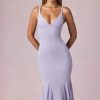 V-Neck Godet Midaxi Dress in Lilac