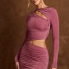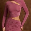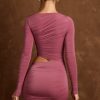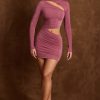 Asymmetric Cut-Out Draped Mini Dress in Dark Rose