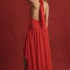 It’s a sultry summer. Make your plans unforgettable with the Oliana maxi dress, crafted from premium chiffon for an airy, lightweight feel that pairs perfectly with balmy nights. It’s cut to an asymmetric silhouette framed with a plunging halter neckline and features a waterfall-inspired front split. It’s complete with a draped panel at the front secured with gold-tone hardware and a low open back.