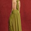 Asymmetric Halterneck Maxi Dress in Olive Green