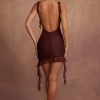 Backless Ruffle Detailing Mini Dress in Brown