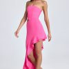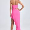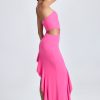 Bandeau Cut-Out Ruffle-Trim Maxi Dress in Lollipop Pink