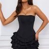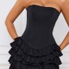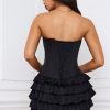 Bandeau Ruffled Tiered Corset Mini Dress in Black