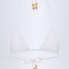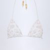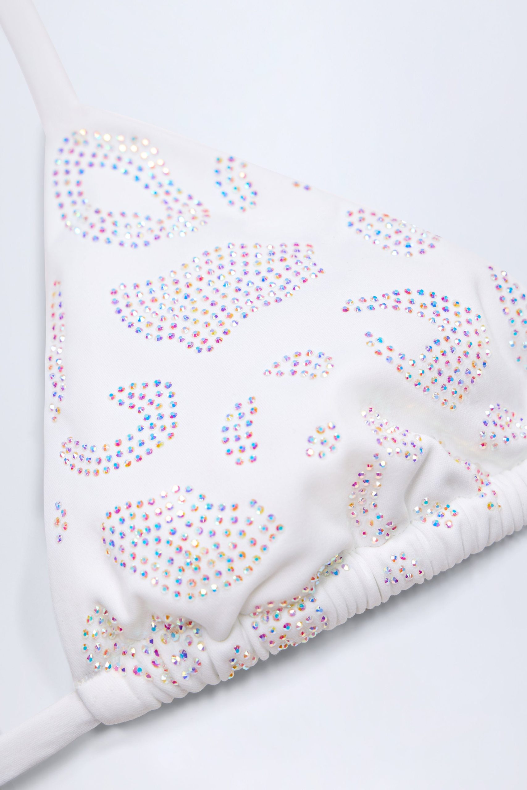 Bead-Detail Triangle Bikini Top in White Leopard Hotfix