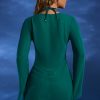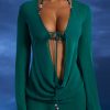 Bead-Embellished Cowl-Neck Sheer Mini Dress in Jade Green
