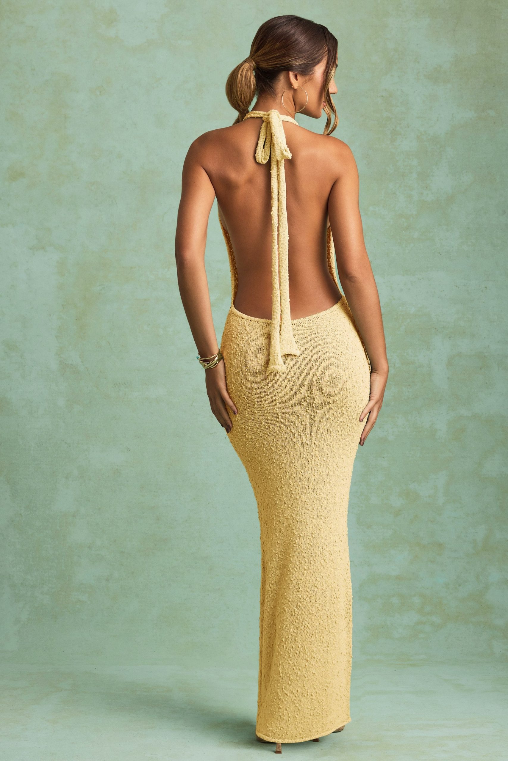 A love letter to summer dressing. Crafted from lightly textured and subtly sheer bouclé knit fabric, the Mirri maxi dress is a warm-weather favourite that can be styled on holiday and at home. It’s cut to a classic halterneck silhouette with adjustable straps for custom styling and is designed to skim your curves.