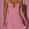 Bow-Detail A-Line Mini Dress in Dusty Pink