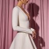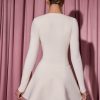 Bow-Detail Plunge-Neck A-Line Mini Dress in Ivory