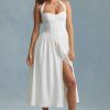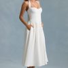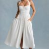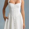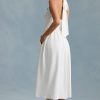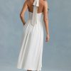 Button-Detail Halterneck Midaxi Dress in White
