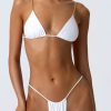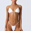 A classic design with an elevated twist, this bikini top is crafted from premium stretch-jersey swim fabric to a timeless triangle silhouette, anchored with gold-tone chain-link hardware. Designed with moveable ruching at the cups for customisable coverage, it’s finished with adjustable shoulder straps and ties at the back for your perfect fit.