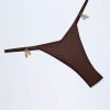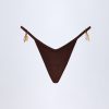 Charm-Detail Thong Bikini Bottoms in Dark Chocolate