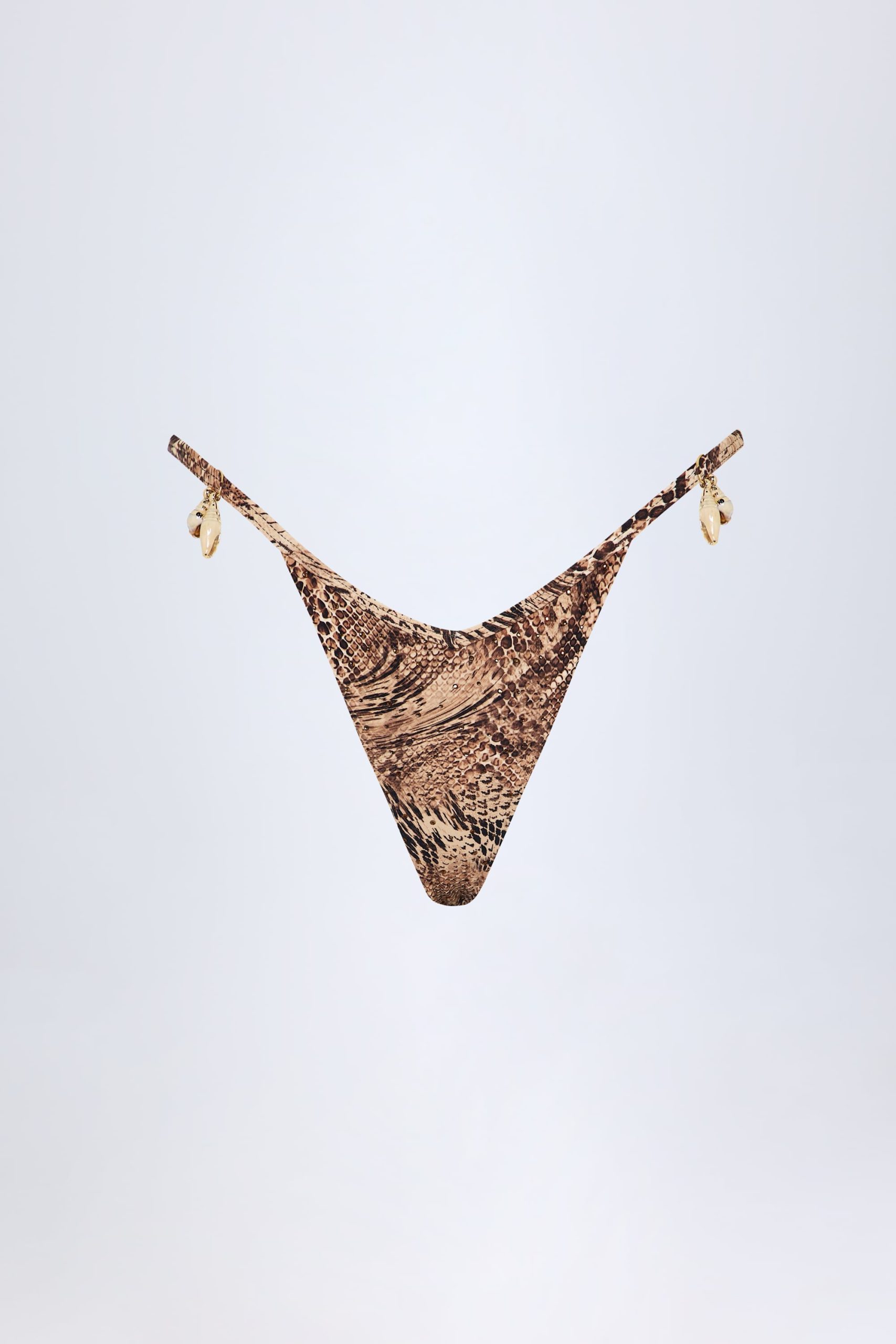 Made to shine on sun-soaked days, the Calayan bikini bottoms are crafted from our stretch-jersey swim fabric to a universally flattering high-cut silhouette with thong-back coverage for minimal tan lines. They’re strung with faux shell charms, inspired by tropical beach finds.