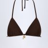 Charm-Detail Triangle Bikini Top in Dark Chocolate