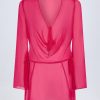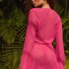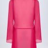 Perfect for poolside pictures and beachside bar-hopping, the Oualie mini dress is crafted from premium, lightweight and sheer chiffon to spotlight your favourite swimwear. It’s cut to a breezy silhouette framed with a cowl neckline and adjustable ruching at the hip so you can adjust it to your perfect length. It’s complete with long flared sleeves and adjustable ties at the front tipped with gold-tone beads.