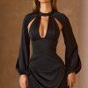Classic elegance, reimagined. Designed to skim your curves for a universally flattering fit, the Reia dress is cut to an A-line silhouette with balloon sleeves and a draped mini skirt. It’s crafted from premium lightweight satin with a touch of stretch and features statement cut-out detailing at the front, making it the perfect option for evening events.