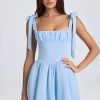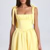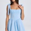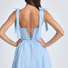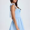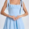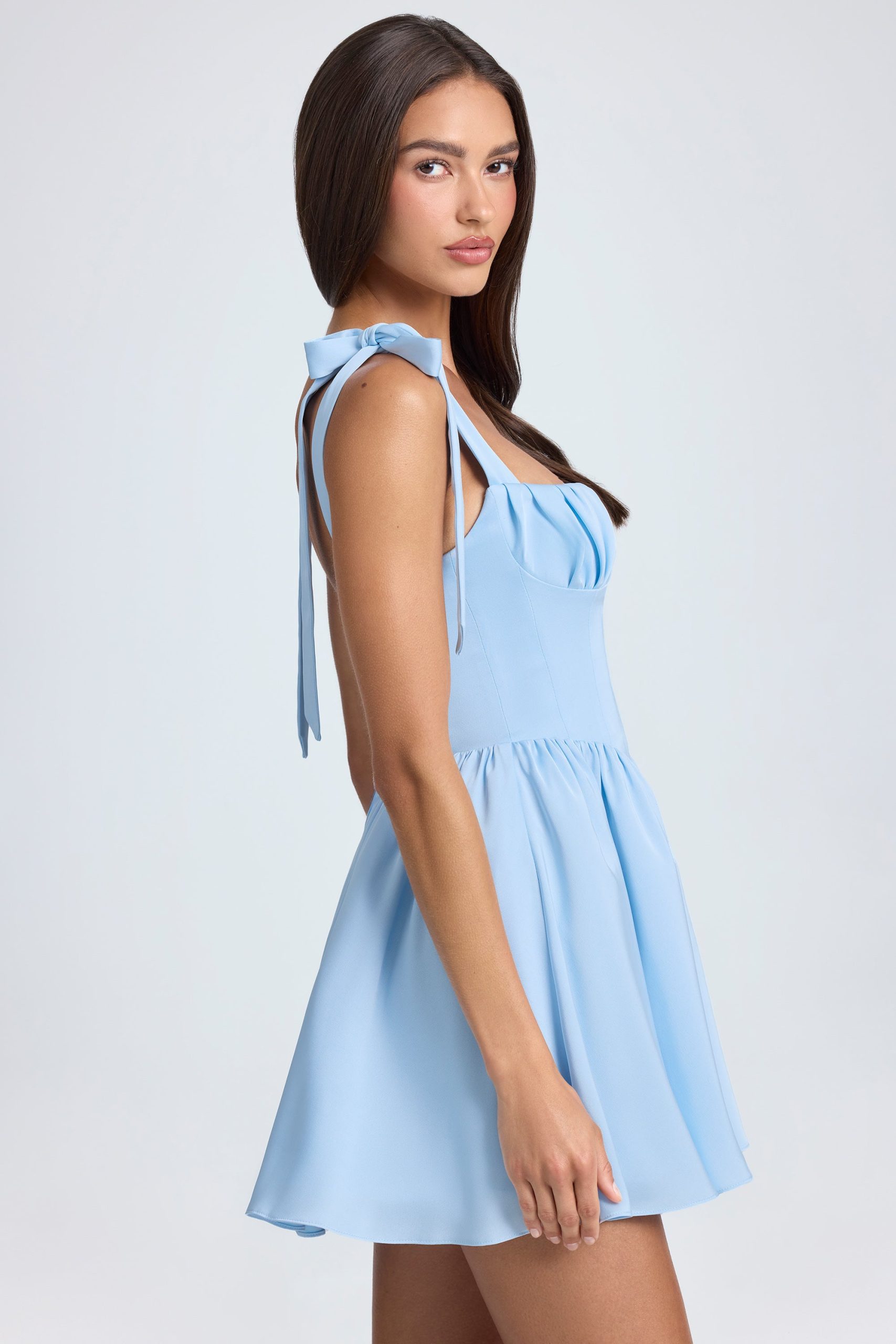 Sweet silhouettes made for social season. A stunning design that’ll take you from day to night, the Bellamy dress is crafted from lustrous lightweight satin with a fitted bodice that cinches the waist and a voluminous mini-length skirt. It’s framed with a straight neckline enhanced with delicate pleats, functional shoulder ties and signature lace-up back detailing that can be adjusted for your perfect fit.